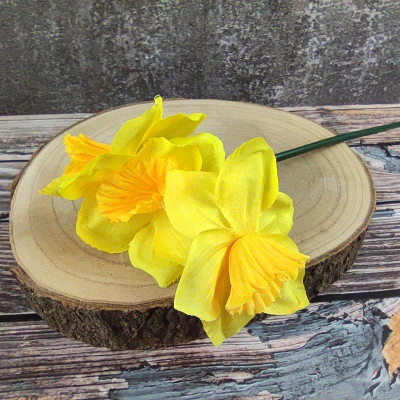 Umělý narcis ve žluté barvě se 3 látkovými květy. Tyto narcisky navodí správnou jarní atmosféru. Ve stonku je ukrytý drátek, narcis se dá ohnout nebo zastřihnout kleštěmi.