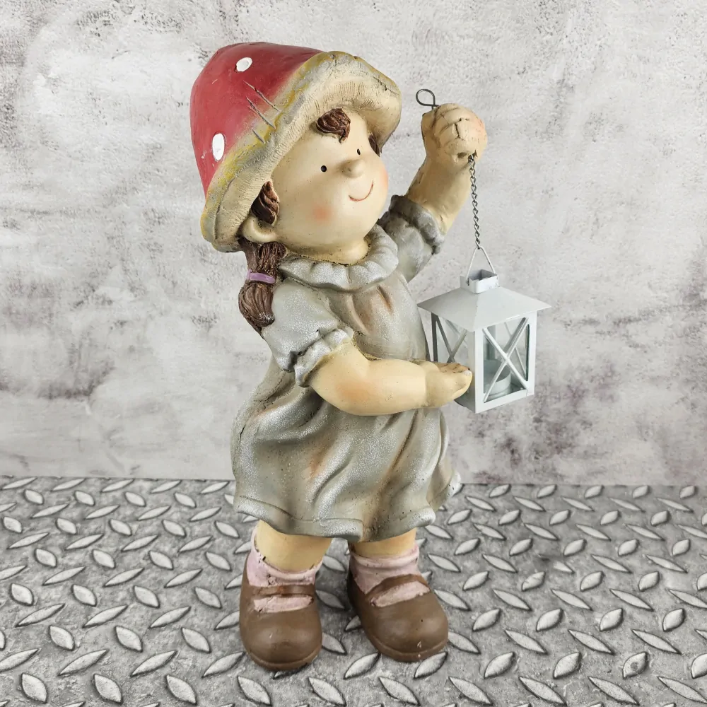 Figurka dítěte s houbovým kloboučkem a lucerničkou- holka, cm