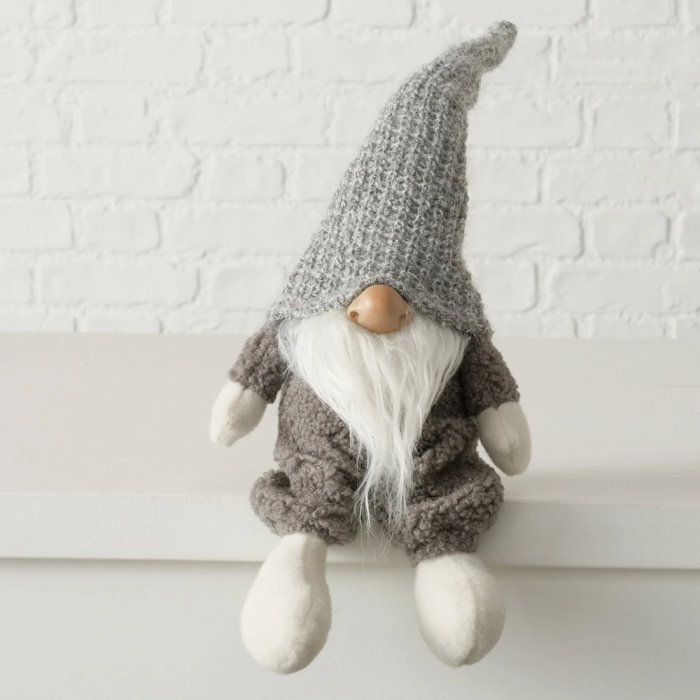 - Vánoční figurka- sedící plyšový skřítek v šedé čepici- 44 cm